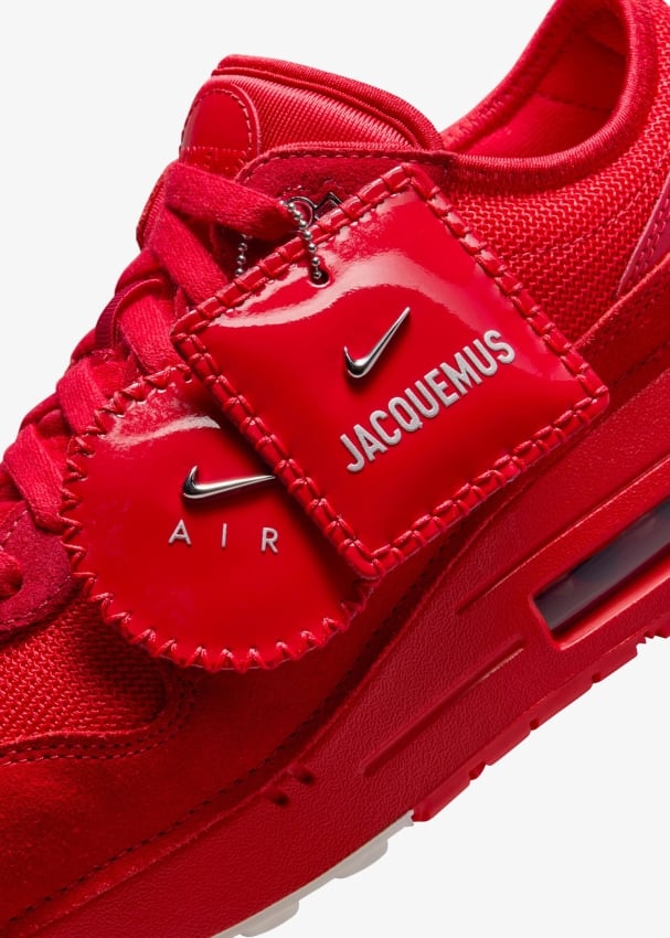 تجتمع نايك والعلامة الفرنسية الفاخرة جاكيموس مرة أخرى في تعاون جديد يتميز نسخة جديدة من سنيكرز إير ماكس 1 الأيقوني بوحي من مدينة باريس. يكرّم السنيكرز التصميم الأيقوني لسنيكرز إير ماكس 1، مع تفاصيل تشيد للمجموعات الأولى لدار جاكيموس كفتحات التهوية ذات الأشكال الغير متماثلة. يأتي السنيكرز مصنوعاً من خامات فاخرة مثل الشمواه والنايلون بألوان "يونيفيرستي ريد" و"ميتاليك سيلفر". يكتمل التصميم بشعارات نايك وجاكيموس، رباط إغلاق بطرف جلدي، بالإضافة إلى مفاتيح مستديرة ومربعة للمسة نهائية مميزة.