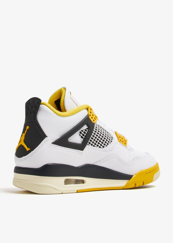ظهر سنيكرز إير جوردان 4 من نايك لأول مرة في عام 1989 ويُعتبر النسخة الأخف وزناً من إصدار إير جوردان السابق المُصمم من قبل تينكر هاتفيلد. يتميز هذا الحذاء بتصميم بألوان "فيفيد سالفور" مع تفاصيل باللون الميتاليك، جزء علوي من الجلد والشمواه، شعار جامبمان الشهير على الكعب ونعل مطاطي بتقنية "إير".