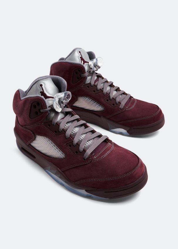أضِف لمسة مستوحاة من الريترو إلى خزانة أحذيتك مع سنيكرز إير جوردان 5 ريترو برغندي من نايك. يتميز بجزء علوي من الشمواه باللون البرغندي مع لمسات باللون الفضي، ألواح شبكية شفافة على النعل الأوسط واللسان وتوسيد بتقنية "اير سول" على الكعب مع نقش متعرج على النعل الخارجي.