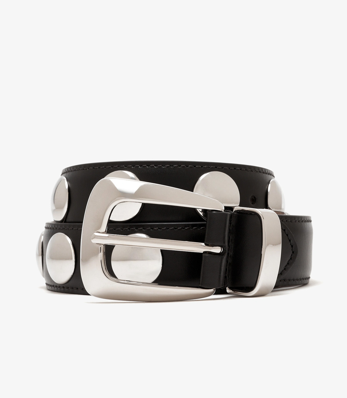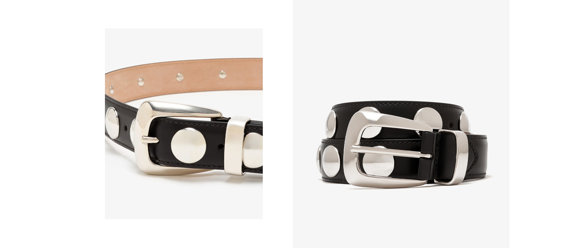 تفاصيل صغيرة تمنحكِ حضوراً لافتاً. سيكون هذا الحزام الأسود الأنيق بالدبابيس المعدنية خياركِ المفضل مع كل شيء، من الجينز إلى الفساتين.