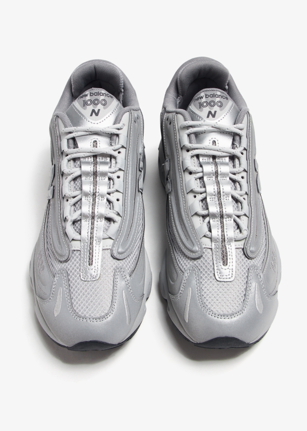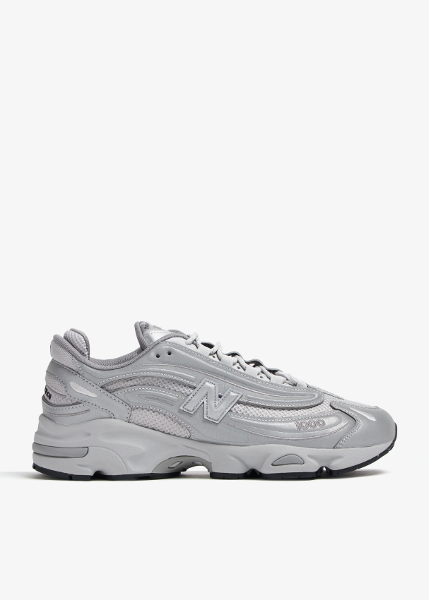 New Balance reintroduces a classic style with a shiny new look. The M1000 sneakers sport a sleek, low-top silhouette with an airy mesh base, metallic silver leather overlays, small N logos on the sides, and a secure lace closure with woven eyelets. Take note of the ABZORB cushioning underfoot for a responsive ride, complete with Stability Web outsole technology that offers superior shock absorption.