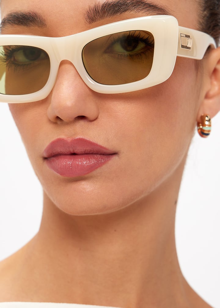 A classic slimline pair of sunglasses that will take you from season to season, the Work It! sunglasses by Le Specs offer a '90s-inspired oval silhouette with bespoke Le Specs metal plate hardware inlaid on each temple. They feature a lightweight and durable ECOZEN frame and shatterproof, scratch-resistant polycarbonate lenses to keep harmful UV rays at bay.