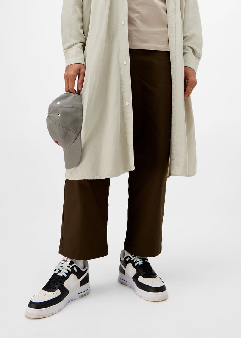 Nike's iconic Air Force 1 '07 sneakers get a 'Split design' treatment! Presented in a Phantom leather base, they're detailed with black overlays, split-leather Swooshes along with the iconic AF1 rubber soles.