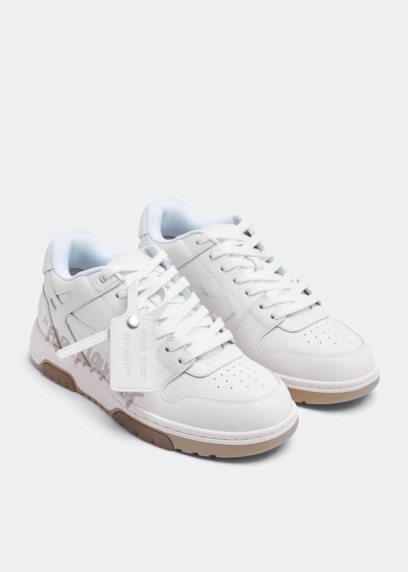 As the name goes, the Out of Office 'OOO' sneakers were created by Virgil Abloh, the founder of Off-White for all-day wear. They feature “For Walking” text and an arrow on the side, contrasting outsole with translucent gel insets, classic perforated toe vamps, ribbed heel, and a recontextualized logo.